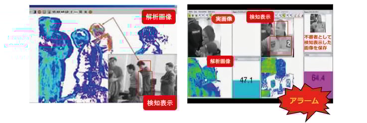 カメラ画像から自動解析し、不審者の事前検知を可能にしたシステムです。